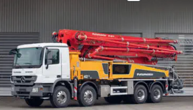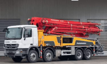 Le camion pompe est un véhicule exclusivement dédié à la manutention du béton. Grâce à sa flèche, il assure l’acheminement du matériaux de la sortie du camion toupie jusqu’au lieu de coulage.